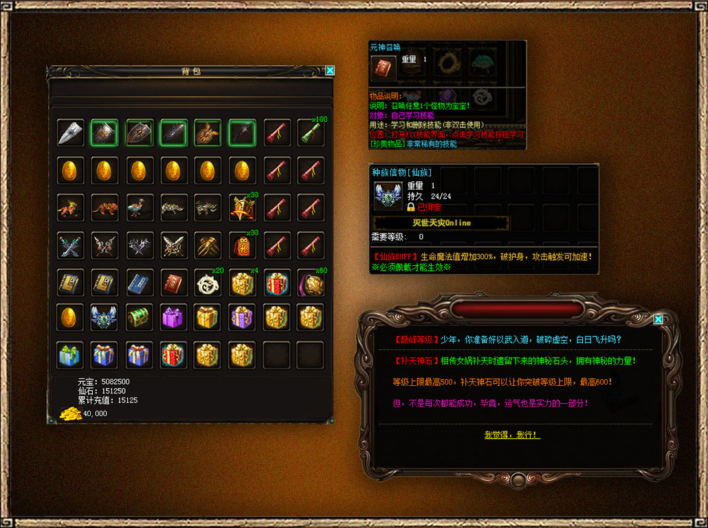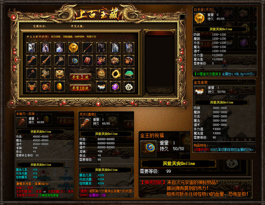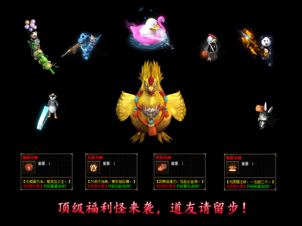 全新玩法模式、打BOSS 触发爆元宝、装备回收元宝比例高、活动多!